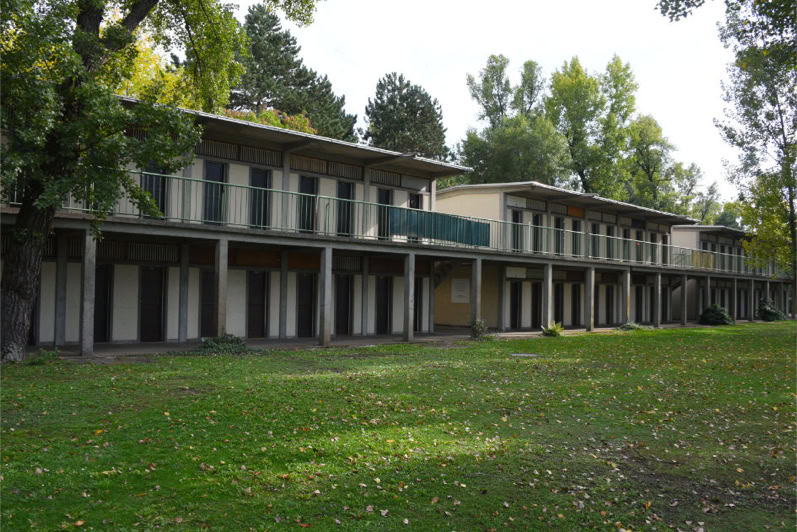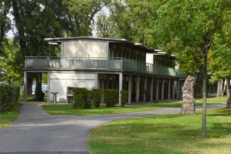 Das Wiener Freibad Gänsehäufel hat eine lange Geschichte. Um 1900 richtete der Naturheilkundler Florian Berndl auf einer Insel in der Alten Donau ein Freiluft-, Sand- und Sonnenbad ein. Einige Jahre später über nahm die Gemeinde Wien die Anlage und stattete sie 1907 mit Hochquellwasseranschluss und elektrischem Licht und aus. Das bei der Wiener Bevölkerung überaus beliebte Bad wurde während des Zweiten Weltkriegs komplett zerstört. 1948 begann nach Entwürfen von Max Fellerer und Eugen Wörle der Wiederaufbau des Gänsehäufels. Es entstand einer der bemerkenswertesten Frezeitkomplexe Wiens, der bis zum heutigen Tage nahezu unverändert im Original erhalten geblieben ist.