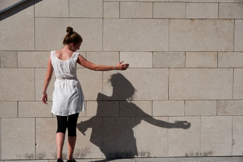 Licht wirft Schatten. Schatten zeigen und verbergen. Sie zeigen Umrisse und Konturen. Sie verbergen Details innerhalb der Umrisse. Schatten sind zweidimensionale Konturabbilder von Dingen, Menschen, Tieren. Wo es Licht gibt, gibt es Schatten. Menschen können somit ihrem Schatten nicht entkommen, sofern es nur das geringste Licht gibt. Das bietet die Möglichkeit zur Auseinandersetzung mit dem Selbst.